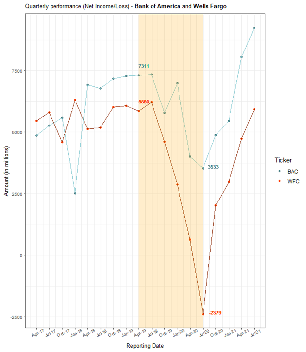 pre-COVID peak in Q4 2020, whereas WFC had not achieved this goal at the end of Q2 2021.